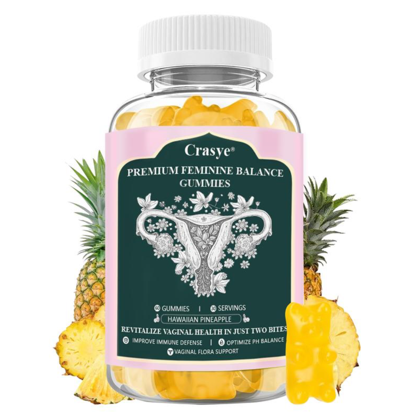 Premium Feminine Balance Gummies PH Balance Health Gummies Probiotics Hawaiian Pineapple Female Gummies for Women Private Area - 60 Gummies - 30 Servings vitamins women